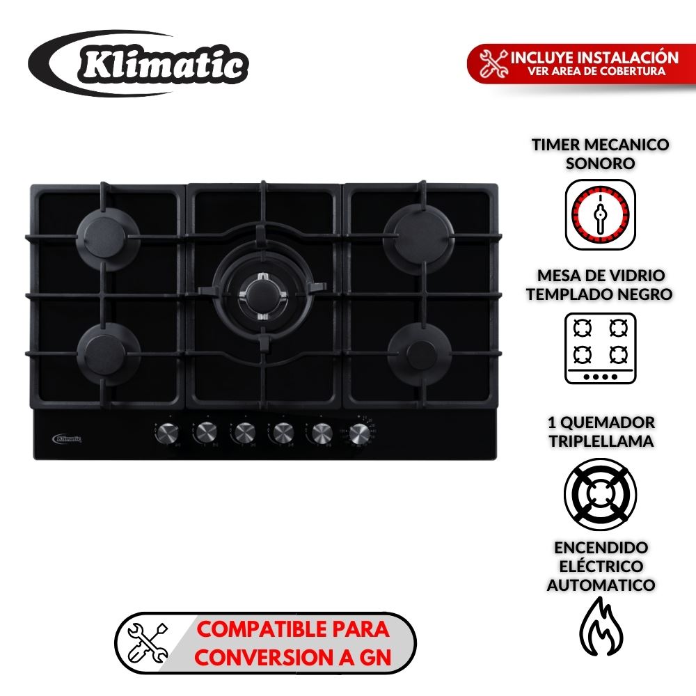 Olvídate de los fósforos, ya que esta encimera posee el encendido eléctrico automático, que solo presionando la perilla y girándola a la izquierda encenderá. También cuenta con 2 potentes quemadores triple llama para una rápida cocción. Esta campana forma parte de nuestra línea black, es su versión de 90 cm, que no debe faltar en tu cocina gracias a su diseño y su estética, con vidrio direccional del vapor para que redireccione la grasa hacia sus 2 filtros de aluminio.